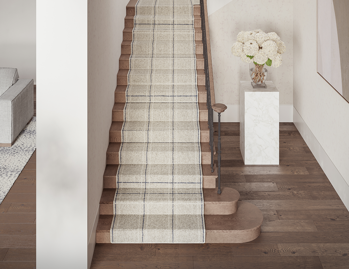 Hallway rugs add warmth and make the space feel wider. Leave at least 6" from the wall and avoid tripping hazards in these high-traffic areas.