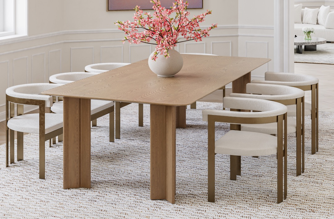 A rug can add a stylish touch and bring warmth to your dining room. Since the dining table is the room's centerpiece, it should be centered on the rug, with all chairs placed fully on the rug's surface.