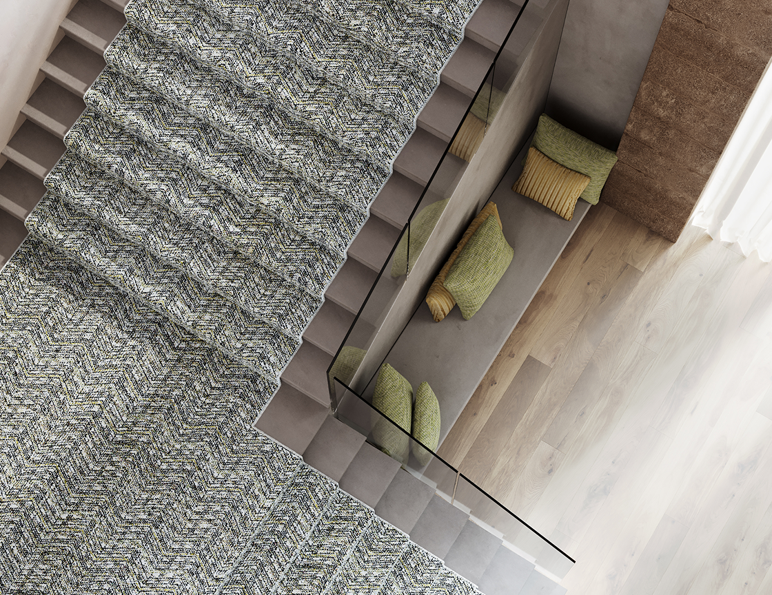 In these spaces, keep furniture legs off the rug. This improves safety and helps the hallway or corridor feel more open and less cluttered.